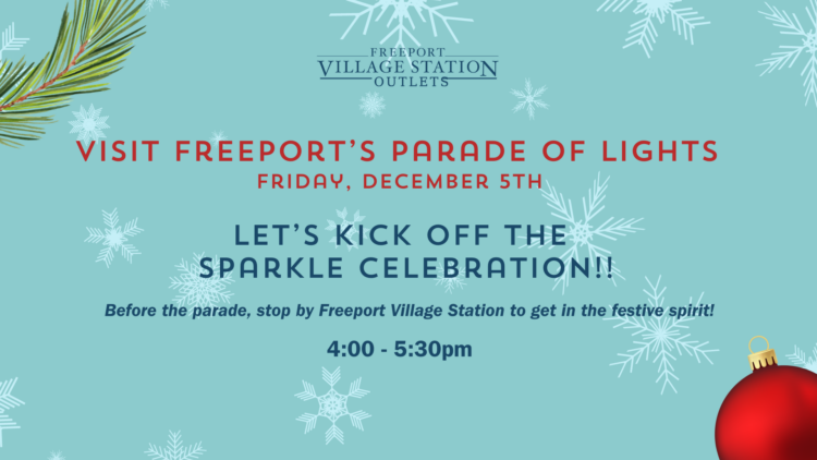 Join us at Freeport Village Station before Visit Freeport's Parade of Lights for a sparkling surprise!