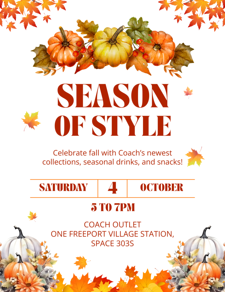 Join us for an exclusive evening featuring Coach’s newest fall collection, complete with cozy seasonal drinks and snacks to sip and savor while you shop.